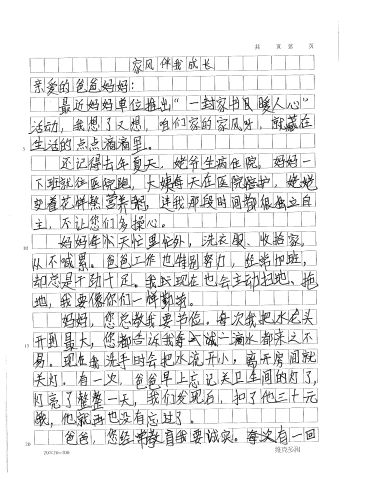 作品名称:致妈妈的一封信