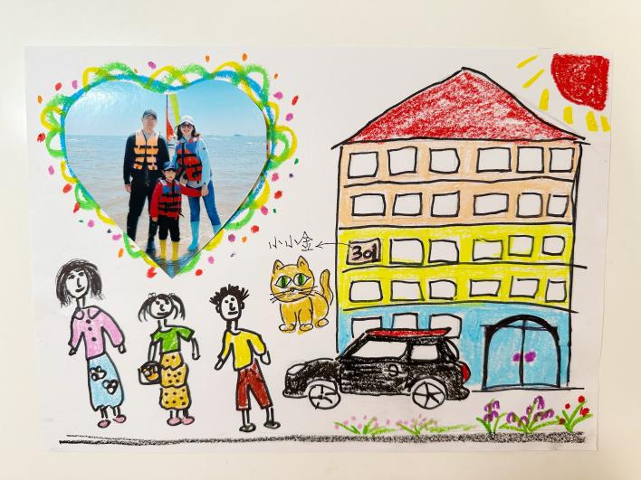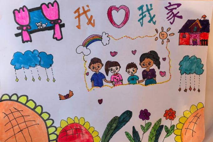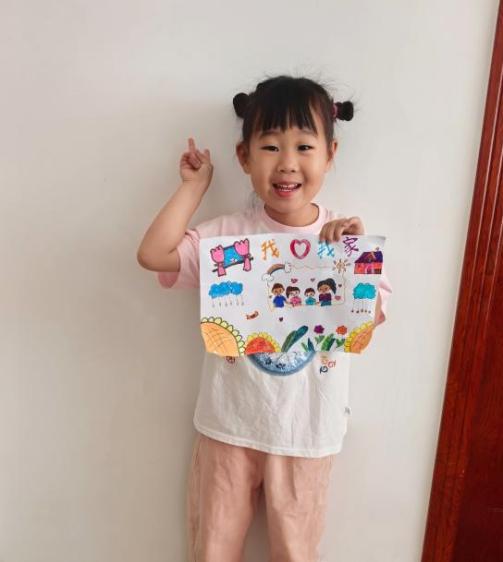 作品介绍:这幅《我爱我的家》描述了我心中对家的认识,这个家里有幸福的一家四口,有我眼中最温柔的妈妈、像超人一样的爸爸和活泼可爱的弟弟,体现了幸福、和睦、友爱的家风。